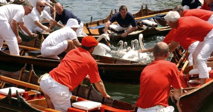 В этой стране все лебеди по закону принадлежат короне, ещё с XII века, и существует должность"хранитель королевских лебедей". Процедура ловли и маркировки птиц проходит красочно и ярко, но служит больше для переписи и контроля за их здоровьем.
