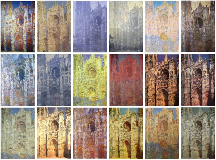 Моне, например, написал огромную серию «Руанских соборов» – один и тот же фасад собора в городе Руане, но в разное время суток, в разную погоду и в разное время года. То есть – при разном освещении!