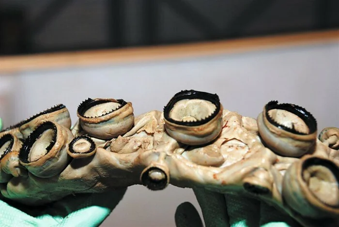 Однако это был современный танкер, стальной, размером почти как стадион. Представьте себе, что бы произошло, если бы на месте танкера оказалась средневековая рыболовная шхуна, сделанная из дерева? «Клюв» кальмара – страшное оружие, не менее страшны его присоски, вооружённые острыми, как бритва, когтями.