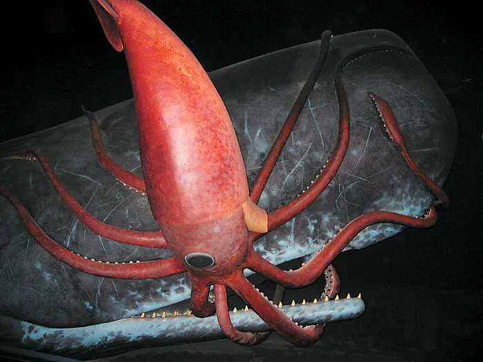Сражение гигантского кальмара с кашалотом (реконструкция)
