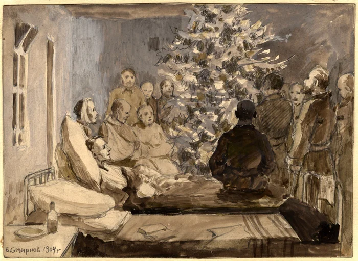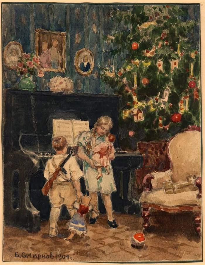 На всех рисунках серии подпись: "Б. Смирнов 1904 г." (Без "ера" на конце – но в начале века было модно пренебрегать "ерами".) А за спиной у мальчика игрушечный автомат ППШ, разработанный оружейником Г.С. Шпагиным в 1940 году...