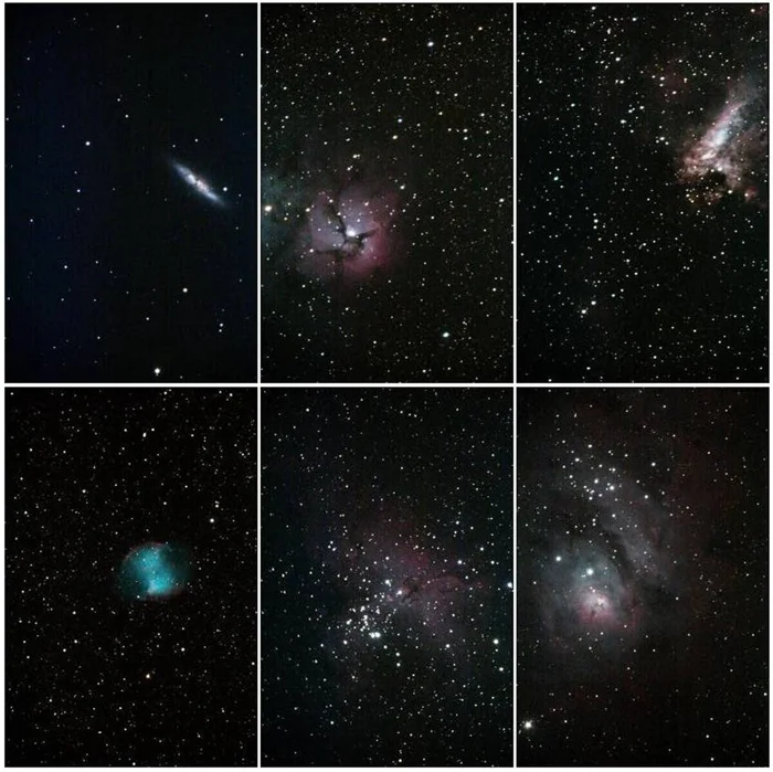 В бинокль «шестнадцатая» видна просто как слабое туманное пятнышко, в телескоп начинает просматриваться форма – «орёл» с распростёртыми крыльями. А далеко от города в большой телескоп становятся видны тёмные «провалы» в центре туманности, чем-то напоминающие трёхзубую «корону».