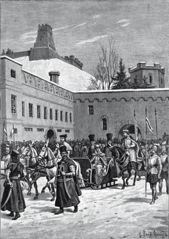 Н. Дмитриев-Оренбургский "Великий князь литовский Александр встречает невесту свою Елену, дочь Иоанна III в Вильне".