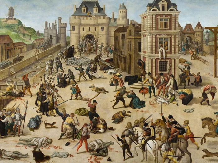 В Лувре перебили всю свиту принца Наваррского, состоявшую из сорока дворян. Самого принца спасло то, что он под давлением короля успел принять католичество. Довольно быстро резня знатных гугенотов перетекла в резню всех подряд. Простые горожане-католики услышали звуки происходящего кошмара и присоединились к кровавой вакханалии. Они начали убивать гугенотов направо и налево, не щадя женщин и детей. Под шумок парижане расправлялись не только с гугенотами, но и со своими врагами, кредиторами, а иногда и с женами...