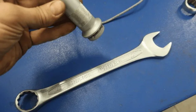 Средний показатель твёрдости составил 25,3 HRC, а вот много это или мало, пока сказать сложно, поэтому давайте приступим к следующим замерам. Второй советский ключ готов к испытаниям: