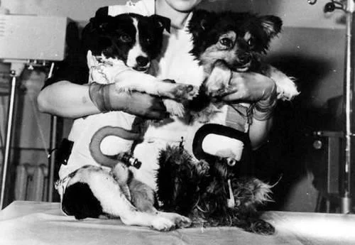 Собак выбрали потому что они были спокойнее мартышек и потому что с ними знали, что делать — дрессировщиков было много + научной базы по рефлексам Павлов оставил много. Зимой 50-го года в Институте авиационной медицины начали готовить 14 отловленных на улице и отобранных врачами дворняг. Им выдали вкусной колбасы и брезентовые комбинезоны, хирургически вживили датчики и вывели сонную артерию в отдельный кожный лоскут (дабы снимать показания пульса и давления), тренировали псов в барокамерах, на центрифугах и вибростендах, приучая к перегрузкам, реву двигателей, долгому сидению в тесной кабине и прочему. 18 апреля в США состоялся ещё один неудачный пуск с обезьяной, летом СССР решил, что пора.