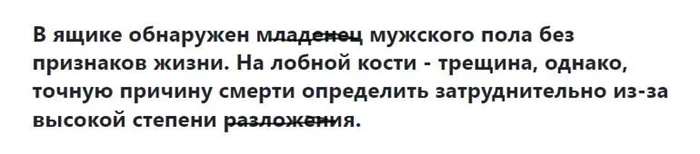 Пораженные таким поведением Ефрема, соседи и родня стали спрашивать, что же случилось. Ефрем несвязно сообщил, что от падчерицы Елены у него "случился ребятенок", который был ему не нужен, и, отняв дитя у матери, Колосков с ним расправился, а затем зарыл под плетнем.