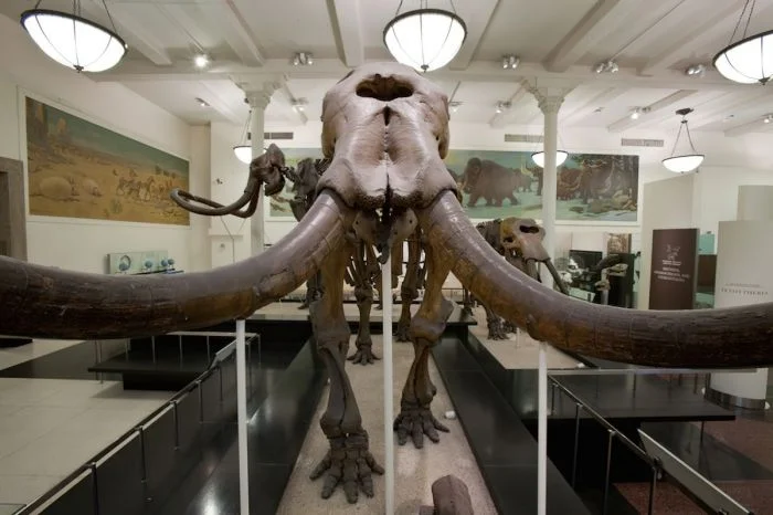 Мамонты (Mammuthus) появились в Северной Америке примерно 1,7—1,2 миллиона лет назад. Хотя между мамонтами и мастодонтами есть некоторые анатомические различия, и те и другие относятся к семейству хоботных. У мамонтов на спине были жировые горбы, которые, вероятно, обеспечивали их питательными веществами и теплом в ледяные периоды. У мамонтов также были плоские зубцы с ребристой поверхностью — такая структура помогала им прорезать волокнистую растительность, в отличие от зубцов мастодонта. Кроме того, мамонты более близки к современным слонам, особенно к азиатскому слону, чем мастодонты.