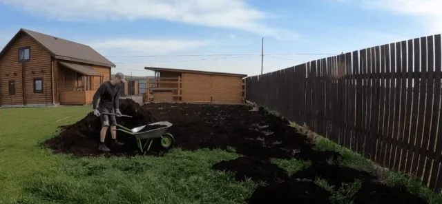 Несколько недель подряд тачка служила мне верой и правдой и с ее помощью я разводил грунт по участку.