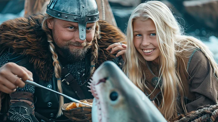 На фото ниже – хаукартль. Мясо акулы, полное токсических веществ. Чтобы оно стало съедобным - его нужно готовить по очень сложной схеме. И у викингов получилось! Теперь это национальное блюдо в Исландии.