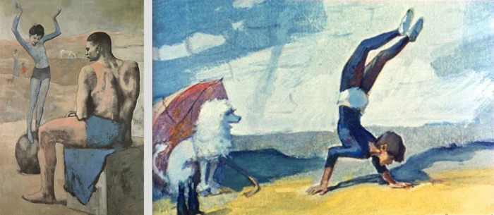 Они фиксировали, «подтягивали» шерстяное трико, чтобы оно не провисало. Посмотрите на одежду девочки-гимнастки на картине «Девочка на шаре» Пабло Пикассо или на иллюстрации к рассказу А. Куприна «Белый Пудель»!