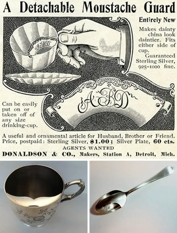 В XIX веке мужчины часто носили усы, но пить чай с ними было неудобно. Так, в 1870-х годах англичанин Харви Адамс изобрел специальную чашку, защищающую усы от влаги. Товар имел настоящий успех, и все его товары были распроданы в течение первой недели продажи. Вскоре изобретение распространилось по всей Европе, и многие компании начали выпускать аналогичную продукцию. Например, была также повязка для поддержания формы усов во время сна и специальная ложка, которая защищала эту область от контакта с пищей.