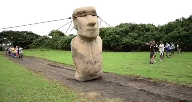Или, скажем, моаи – гигантские каменные статуи с острова Пасхи (Рапа-Нуи). Очень долгое время учёные спорили – каким же образом туземцы транспортировали эти статуи из каменоломен на склонах вулкана Рано-Рараку к месту установки? Ведь для этого многотонную каменную конструкцию пришлось бы передвигать на десятки километров! Кто-то высказывал предположения о неизвестных нам технологиях, а кто-то даже допускал «вмешательство инопланетян». Смогли «поставить точку» в этом споре именно экспериментальные археологи: сперва на бетонных моделях, а затем и на настоящих моаи острова они поставили эксперимент. Взяли длинные сплетённые из лиан канаты, обвязали ими голову моаи с разных сторон, пригласили физически крепких добровольцев, разделили на группы, напряглись, потянули – и... статуя в итоге «пошла»! В вертикальном положении, подобно тому, как грузчики на складах «кантуют» тяжёлые ящики.
