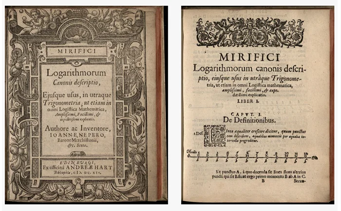 Английский математик Джон Непер первым в мире составил такие «волшебные таблицы» в 1614 году, в книге, которая так и называлась: «Описание удивительной таблицы логарифмов», по-латыни «Мирифици логаритморум канонис дескрипцио».
