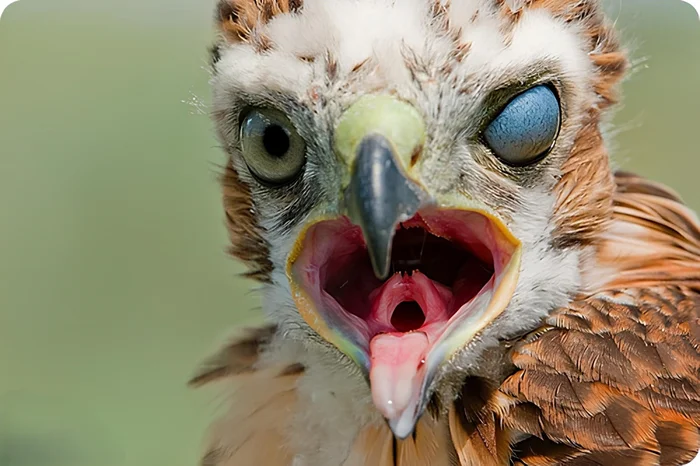 - Защита от ветра: Хищные птицы, пикирующие на добычу с огромной скоростью, используют третье веко, чтобы защитить глаза от сильного напора воздуха.