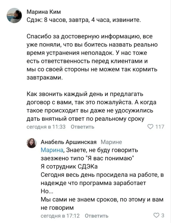 Тем временем в комментариях в соцсетях СДЭКа сейчас примерно так: