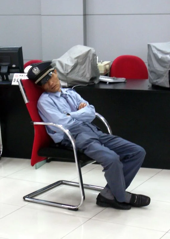 Японский коллега после того, как провел презентацию, тут же сел на стул, сжался и мгновенно заснул.