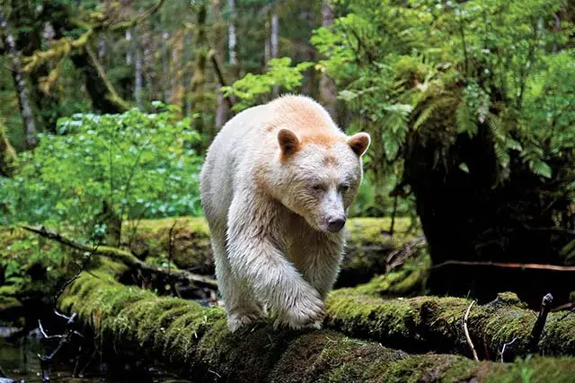 Медведь-дух или кермодский медведь - подвид североамериканского барибала, он не является ни белым, ни альбиносом, ни гибридом. Рецессивная мутация гена — основная причина кремового или светло-янтарного окраса.Только 10 % рождаются с шерстью этого оттенка. Это очень застенчивые животные, которые убегают при виде человека. Они обитают в отдалённых лесах британской Колумбии и в прибрежной Канаде, где живут коренные индейцы, которые веками защищали их от браконьеров.