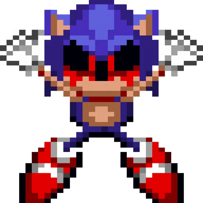 Это крипипаста по игре Sonic. По её сюжету, у Соника есть некая противоположность — жуткий Соник с красными зрачками, чёрными глазами и более бледной кожей. Он убивает всех, кого он видит. Существует очень много шуточных игра, где нам предстоит прятаться от него. В общем, персонаж интересный, жаль только, что в оригинале его нет.