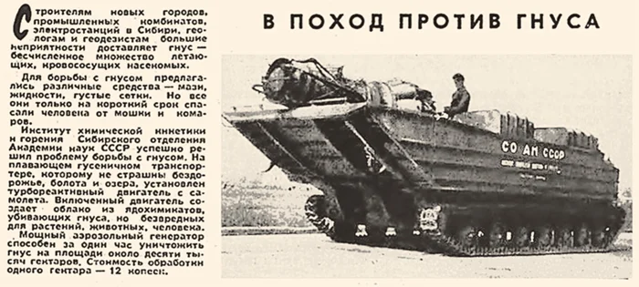 А с 1970-х годов по земле поползли настоящие танки — гусеничные транспортеры распыляли ДДТ из огромной цистерны-дула на носу. Они массово применялись например, при строительстве дорог, ГЭС и городов в Сибири, на стройке БАМа (Байкало-Амурская магистраль).