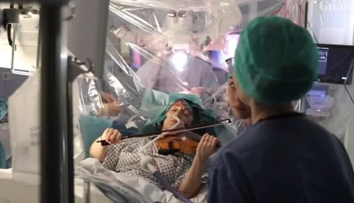 Например, в 2020 году в Больнице королевского колледжа (Англия) провели уникальную операцию. 53-летняя пациентка во время операции по удалению опухоли мозга играла на скрипке. Это помогло хирургам не задеть те части мозга, которые отвечают за мелкую моторику.