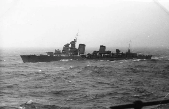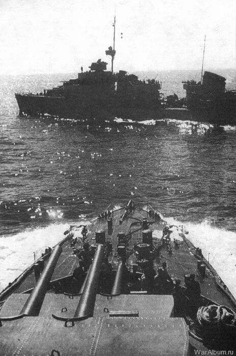 «Ташкент» сближается с эсминцем «Сообразительный». На фото видно, как глубоко сидит нос