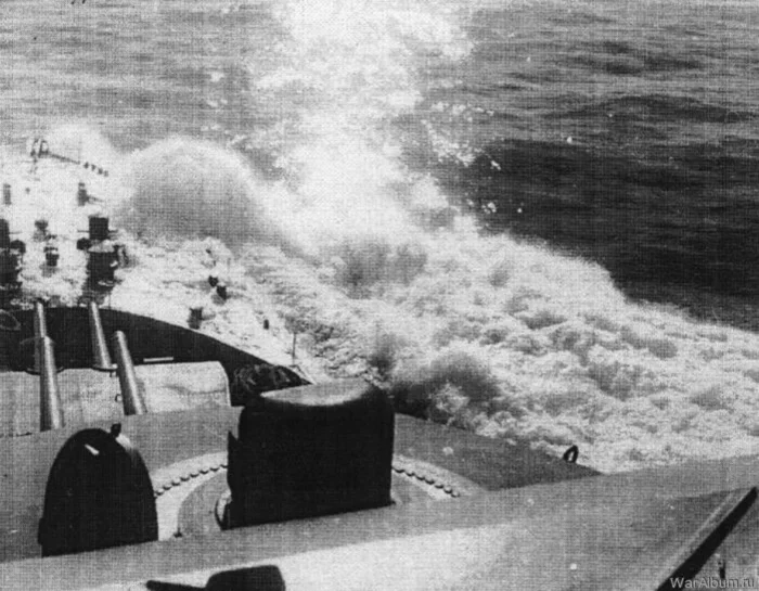Нос «Ташкента» зарывается в волну