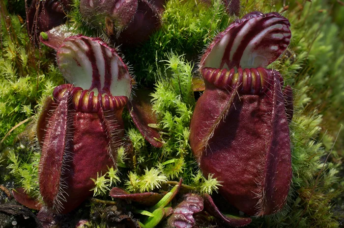Австралийское растение-кувшин, древнее и жутковатое. Впервые было описано ботаником Робертом Брауном в 1802 году. При ярком освещении листва приобретает темно-красный оттенок, в тени же – остается зеленой.