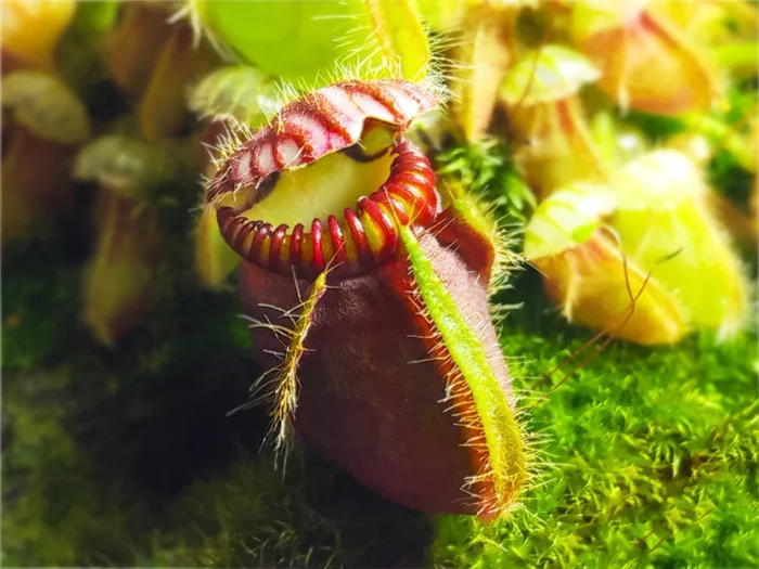Кувшинообразные листья с зазубринами по краям и сладким нектаром внутри заманивают потенциальную жертву внутрь себя. Шипы сверху препятствуют обратному движению невезучего гостя.