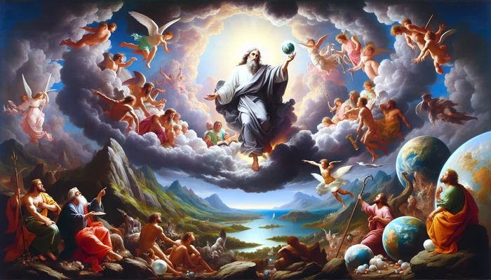 - в первый день Бог создал небо, землю и свет, и отделил свет от тьмы (по сути - описание первых моментов Большого взрыва в метафоричном виде);