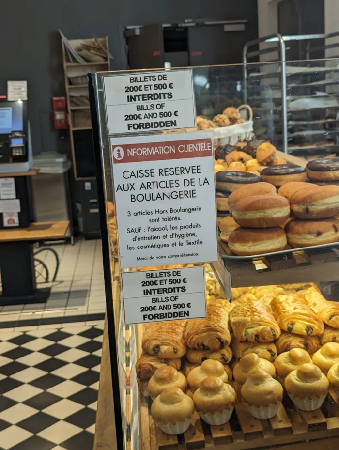 Объявление во французской булочной: "Купюры 200 и 500 евро запрещены"
