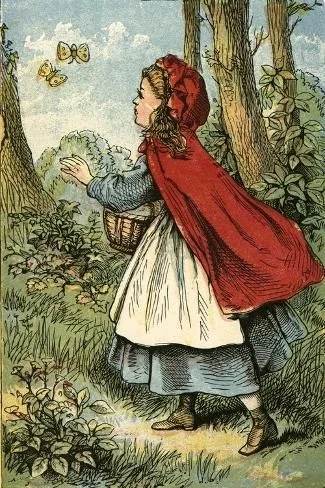 Углубимся в историю еще дальше. И дойдем до сказки «La Finta Nona» (901-1000г.), которую французы переняли уже у итальянцев, и она же в 14 веке устно распроанялась среди крестьян, однако записана она в подобающем виде была лишь в 1870г. под названием Conte de la mère-grand. В этой сказке фигурирует уже просто маленькая девочка, которая несет своей бабушке кусок хлеба и молоко. Оборотень (в других версиях огр/людоед) добирается до бабушки, убивает и собирает ее кровь. А потом скармливает ничего не подозревающей девчушке плоть и кровь ее бабули. (В итальянской версии расписывается подробнее как и какие части тела огр готовил)