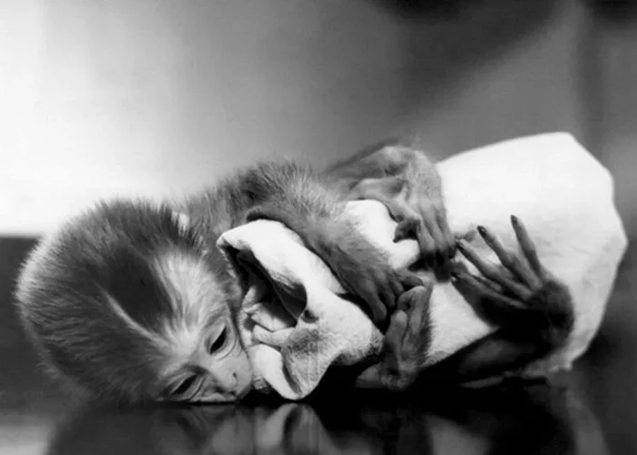 Однако в лаборатории Харлоу были еще десятки других детенышей, тех, кто только ждал своей экспериментаторский очереди и содержался в одиночных клетках. Было замечено: каждый раз, когда у малышей меняют расстеленные на полу махровые полотенца, те цепляются в них и отказываются отпускать. Так выяснилось, что привязанность к кому-либо или чему-либо — такая же сильная потребность для ребенка, как и нужда в еде, воде, тепле и безопасности.