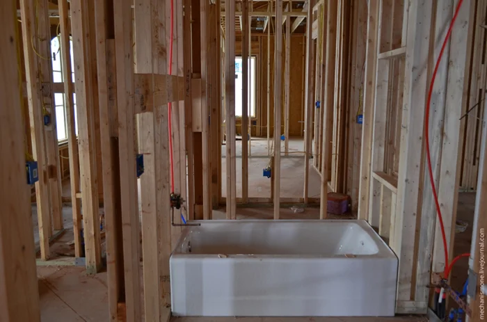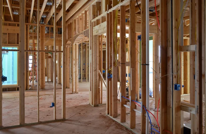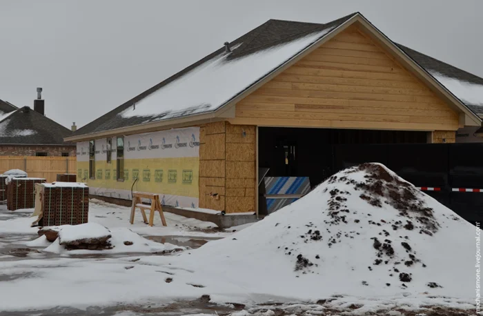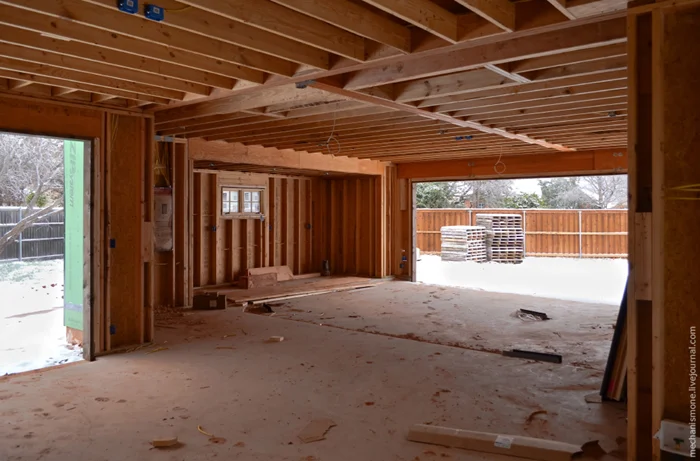 После того, как фундамент залили, начинается возведение каркаса дома. Визуально каркас абсолютно ничем не отличается от хьюстонских домов. Но это лишь сам каркас, а если присмотреться к мелочам, то различия все же есть.