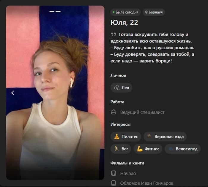 Не совсем то, что я искал для себя, но, девушка довольно милая, поэтому решил ей написать.