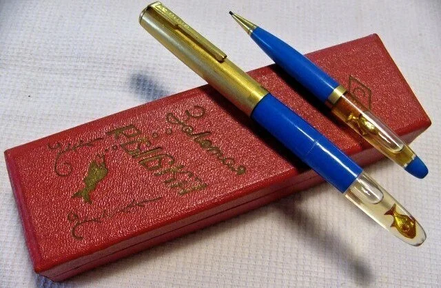 Знаменитый советский набор школьника "Золотая рыбка" (перьевая ручка и механический карандаш). Фото из открытых источников.