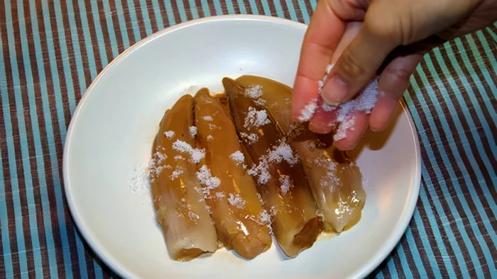 Копальхен чаще всего едят, нарезая тонкими ломтиками, присыпая солью