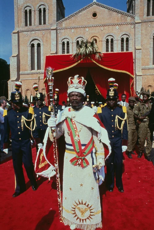 Этот персонаж известен как чрезвычайно эксцентричный правитель, который не чурался злоупотребл*ть человечиной (буквально) и скармливать своих политических противников хищным животным. Будучи под большим влиянием французской культуры (ЦАР - бывшая колония Парижа), Бокасса, видимо, пожелал себе такую же империю, какая была в своё время у Наполеона. По крайней мере, это наиболее вероятно, поскольку и коронационные атрибуты, и символика его "империи" подозрительно похожи на аналогичные вещи у наполеоновской державы.