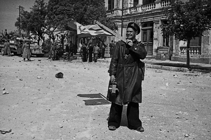 Военный фотокорреспондент Евгений Халдей в освобожденном Севастополе, май 1944