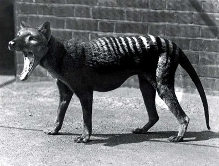 Тасманский волк. Это самый крупный сумчатый хищник, которого истребили колонисты. Вымер в 1936 году.