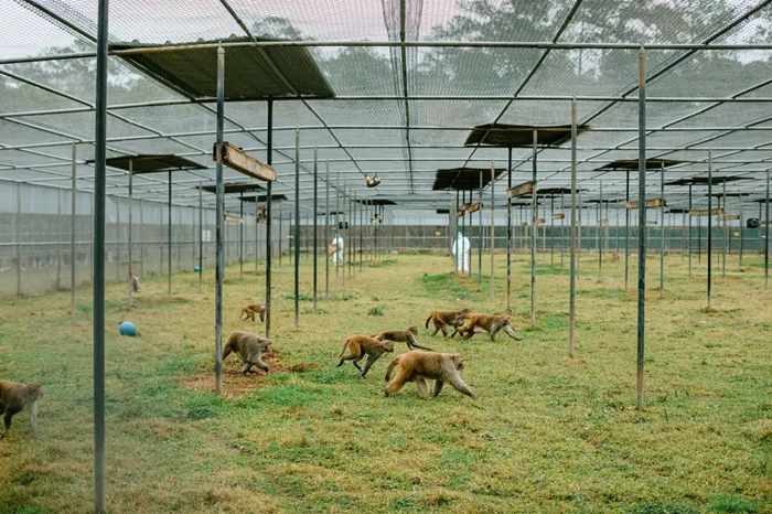 Это лаборатория в Тулейне (США) — один из семи национальных исследовательских центров приматов. Когда обезьяны не проходят исследований, они живут колониями с доступом к природе.