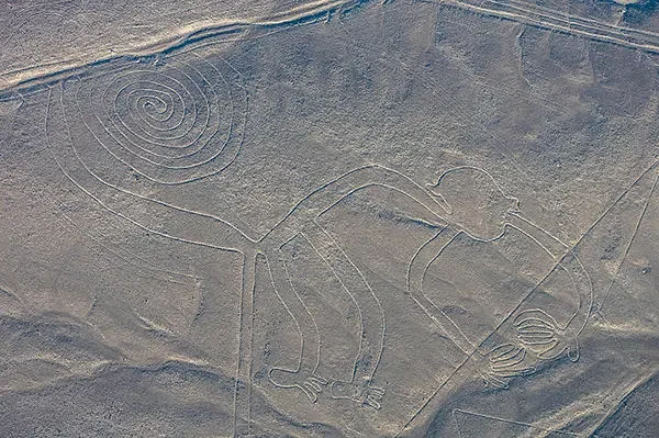 Линии Наска — это коллекция геоглифов, выгравированных на дне пустыни Наска в южной части Перу. Созданные между 500 г. до н. э. и 500 г. н. э., эти рисунки были сделаны путем удаления камешков с поверхности, чтобы открыть контрастную, более светлую землю под ними. Многие линии проходят прямо через местность, другие образуют сложные изображения животных и растений. Общая протяженность геоглифов составляет более 1300 километров, они занимают площадь около 50 квадратных километров, а сами линии обычно имеют глубину от 10 до 15 сантиметров.