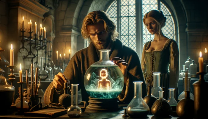 Среди целей, которые ставили перед собой алхимики, значится воссоздание акта божественного творения. Считалось, что путем очистки природных веществ можно понять природные процессы и зародить в пробирке не просто живое существо, а человека.