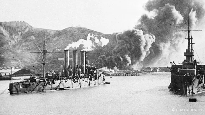 Русские корабли накануне сдачи Порт-Артура, 1904