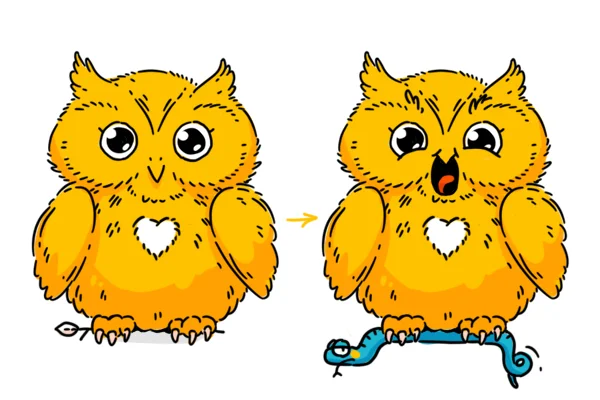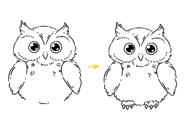 16. Добавляем пальчики с когтями (каждый пальчик лучше не рисовать - они должны смотреться вместе как слипшиеся пельмешки, иначе будет слишком детализированно и зритель будет отвлекаться от мордочки совы)