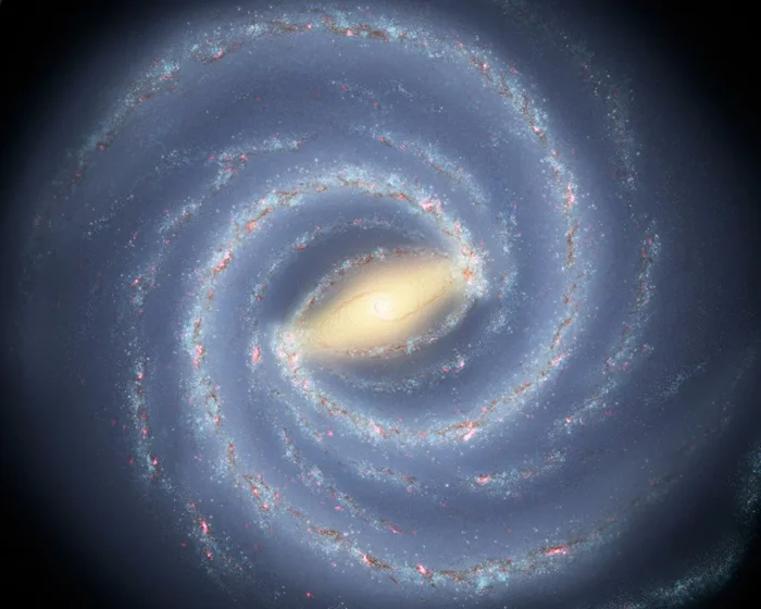 Примерно так выглядит наша галактика Млечный путь. Почему "примерно"? Потому что мы никогда ее не фотографировали, ведь для этого нужно улететь за ее пределы. Поэтому, на фото Млечного пути изображены другие похожие галактики