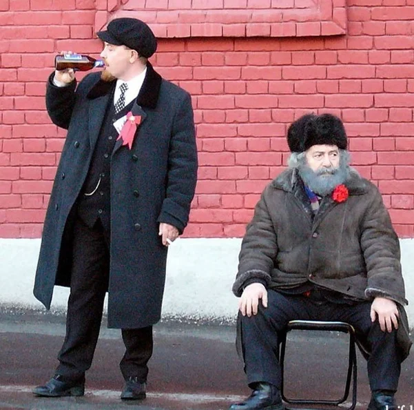 Слева - Керенский. Топор Ленину, конечно, пририсован в фотошопе. Но уж очень ему идет