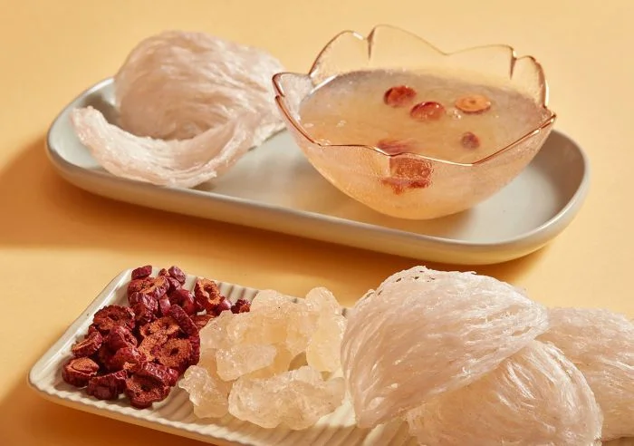 Съедобные птичьи гнёзда, также известные как гнёзда ласточек - это птичьи гнезда, сделанные из застывшей слюны стрижей-саланганов. На солнце корзинка из слюны быстро засыхает, превращаясь в не портящийся с годами пищевой продукт, состоящий из чистого белка. По вкусу он немного напоминает чёрную икру. Деликатесный суп по консистенции похож на кисель, готовится на водяной бане.
