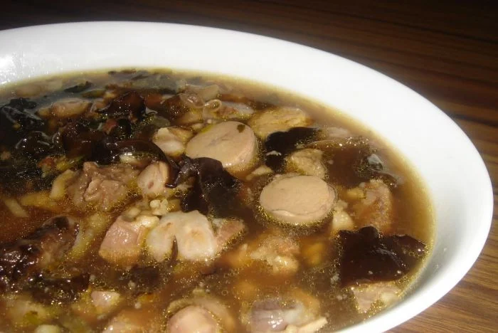 Густой и очень наваристый мясной суп-бульон, который распространён среди кавказских народов. Готовится из говяжьих ног и рубца.