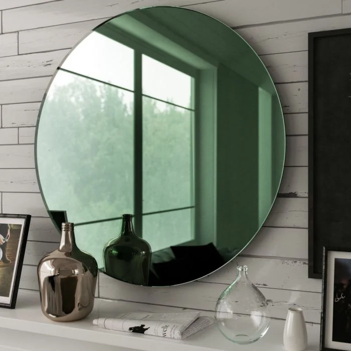 Идеальное зеркало отражает все существующие цвета. Большинство зеркал имеют отражающее покрытие, состоящее в основном из алюминия или, в некоторых случаях, из серебра. Эти материалы способны избирательно отражать определённые длины волн света и поглощать другие. На самом деле зеркала кажутся зелёными из-за железа, которое используется в процессе производства. Железо придаёт стеклу лёгкий зелёный оттенок, который становится более заметным по мере утолщения.